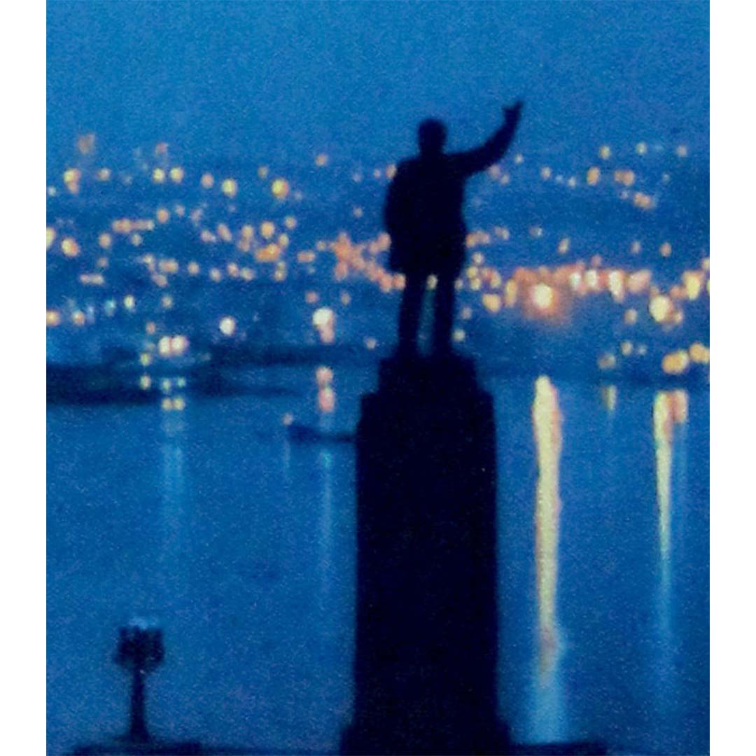 This evocative original Soviet travel poster by Aeroflot, the USSR’s national airline, captures the serene grandeur of Baku, capital of Soviet Azerbaijan, as night falls over the Caspian Sea. Bathed in cool blue twilight, the city’s lights begin to sparkle, tracing the elegant curve of the bay and illuminating Baku’s urban sprawl in a celestial glow.