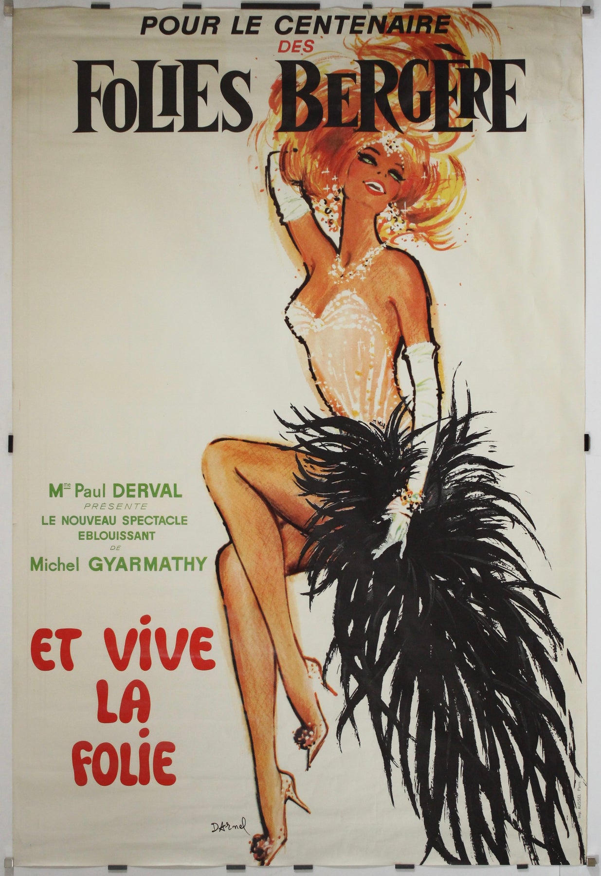 Posters by Darnel from this era remain highly collectible for their flair and fashion appeal, especially those celebrating French nightlife. This piece is a jewel of mid-century stage promotion, brimming with charm, sensuality, and joyful excess.