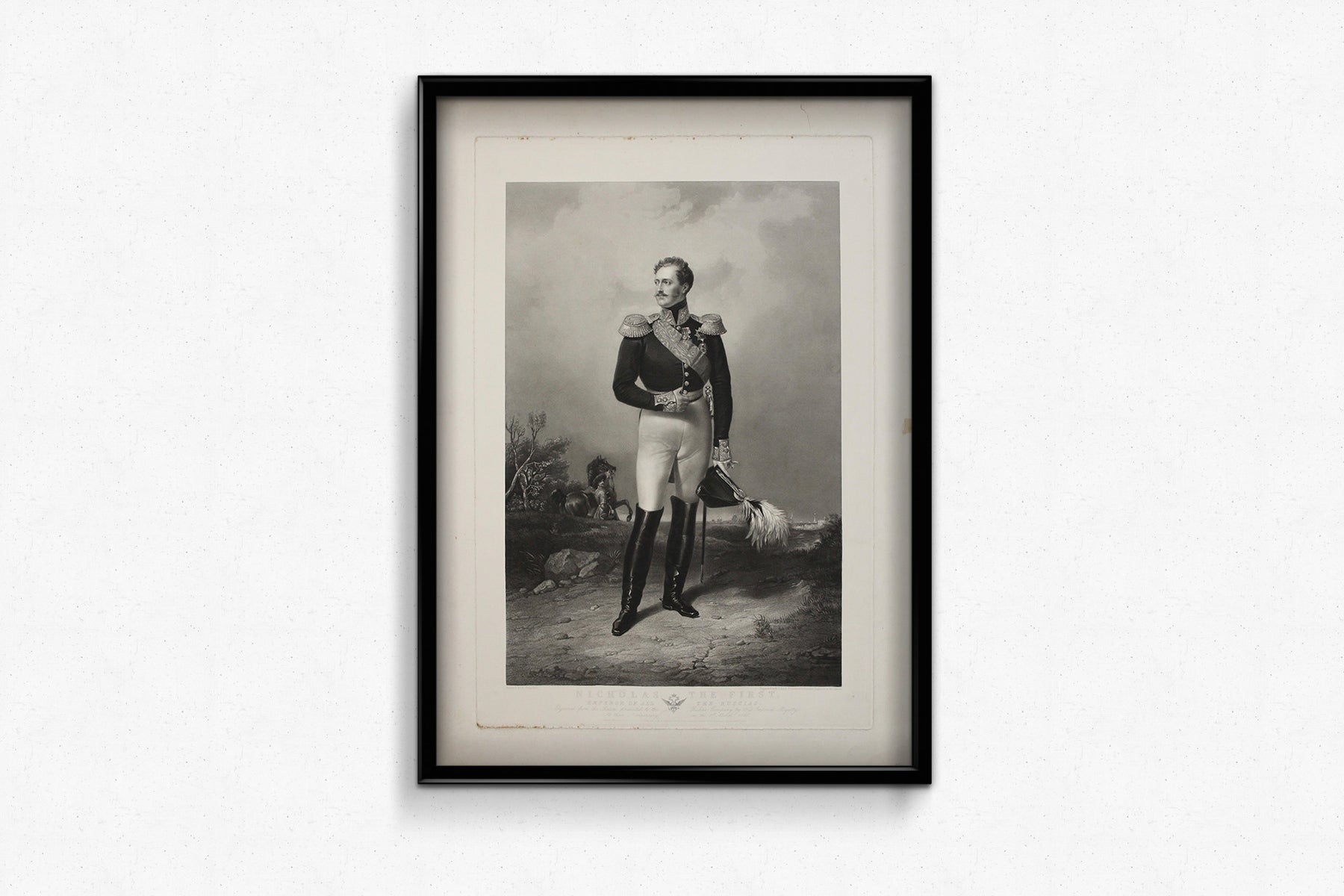 Aujourd'hui, cette estampe constitue à la fois un exemple remarquable de gravure de portrait d'époque et un précieux document historique. Elle témoigne de l'image que Nicolas Ier souhaitait projeter : non seulement comme monarque, mais aussi comme l'incarnation de l'ordre impérial, de la discipline et de la continuité au sein de la dynastie Romanov.