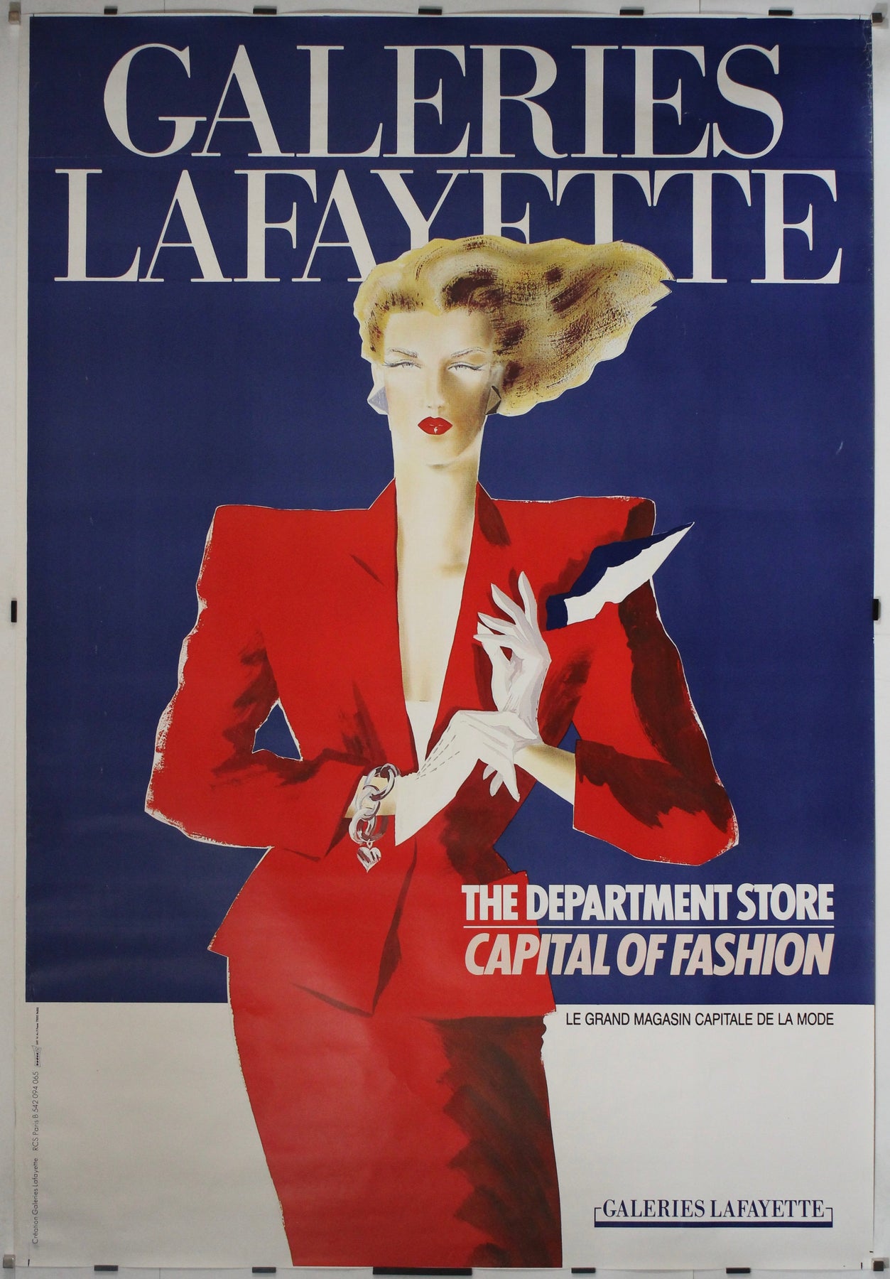 This piece isn’t just commercial advertising—it’s a stylish time capsule from the golden age of editorial fashion, when posters served as powerful visual statements. A compelling collector’s item, it celebrates both the flair of 1980s design and the enduring legacy of one of Paris’s most iconic department stores.