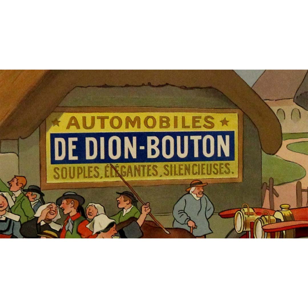 Réalisée dans des couleurs vives et avec un style caricatural animé, l'affiche reflète le goût de la Belle Époque pour l'illustration narrative. Le style de Mourgue allie humour et clarté, rendant le message technologique immédiatement accessible à un large public. L'enseigne De Dion-Bouton, placée en évidence, souligne la fiabilité, le silence et l'élégance – des arguments de vente clés à une époque où les automobiles étaient encore une nouveauté et souvent perçues avec méfiance.