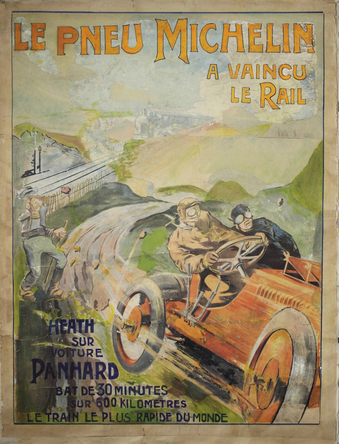 Heath, à bord d'une voiture Panhard, bat le train le plus rapide du monde de 30 minutes sur 600 km.