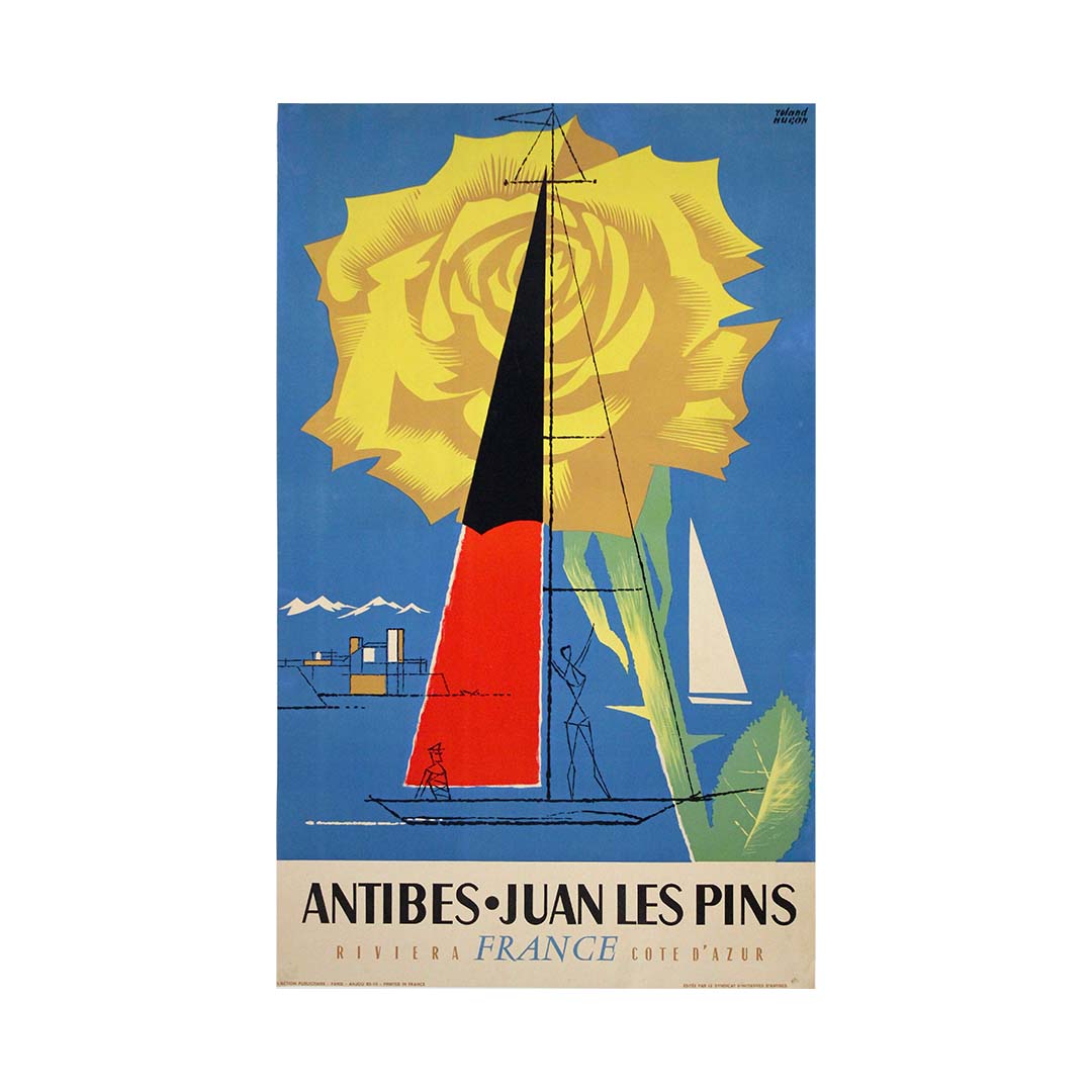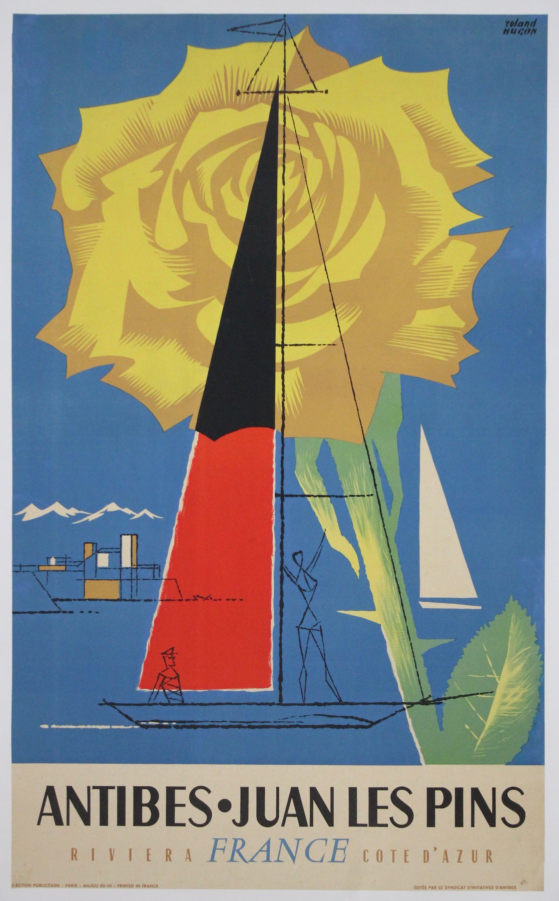 Today, Hugon’s poster stands as a quintessential example of mid-20th-century travel advertising, where abstraction, color, and composition come together to evoke the timeless charm of the Mediterranean coast.