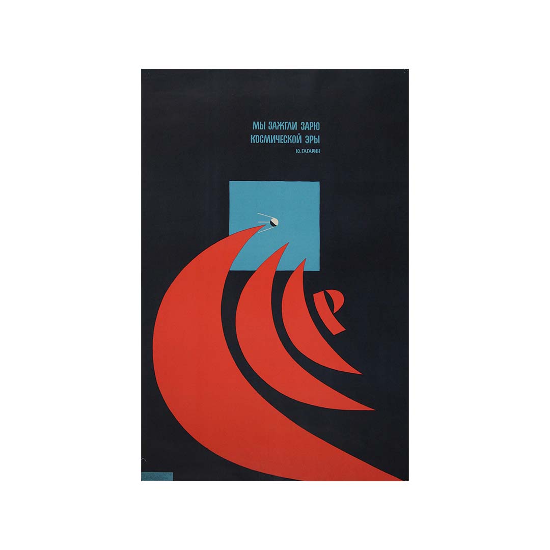 Today, this poster stands as a refined and evocative artifact of the Cold War space race, but also as a timeless celebration of human exploration. It reflects how Soviet artists transformed political pride and scientific achievement into compelling visual poetry. Elegant, modern, and emotionally resonant, it remains a memorable tribute to Gagarin’s historic achievement and to the belief that the stars were within reach.
