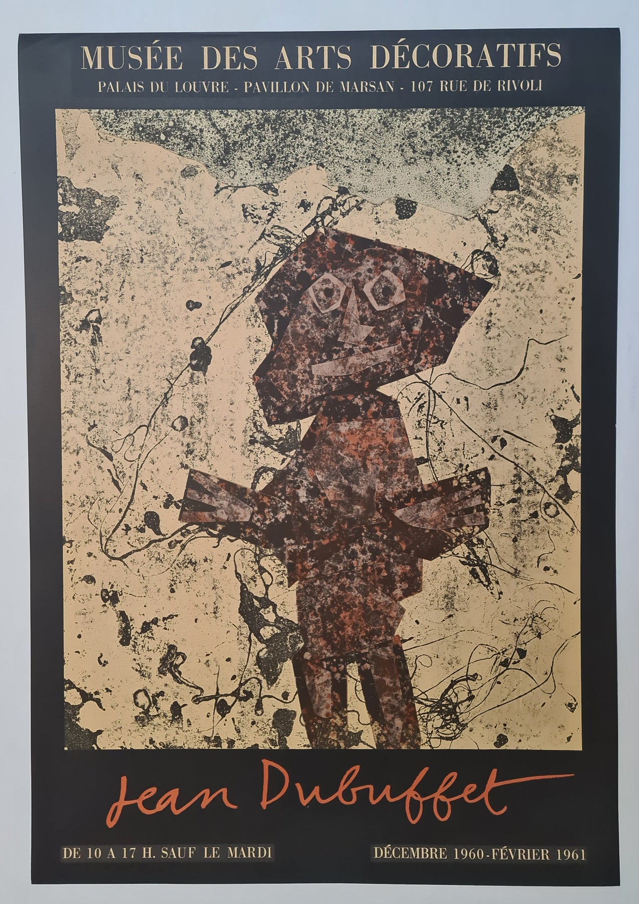 This striking original 1961 exhibition poster was created by Jean Dubuffet himself to promote his major retrospective at the Musée des Arts Décoratifs in Paris. A powerful example of Dubuffet's graphic sensibility, it not only advertised the exhibition but also embodied the very spirit of the artist’s radical vision.