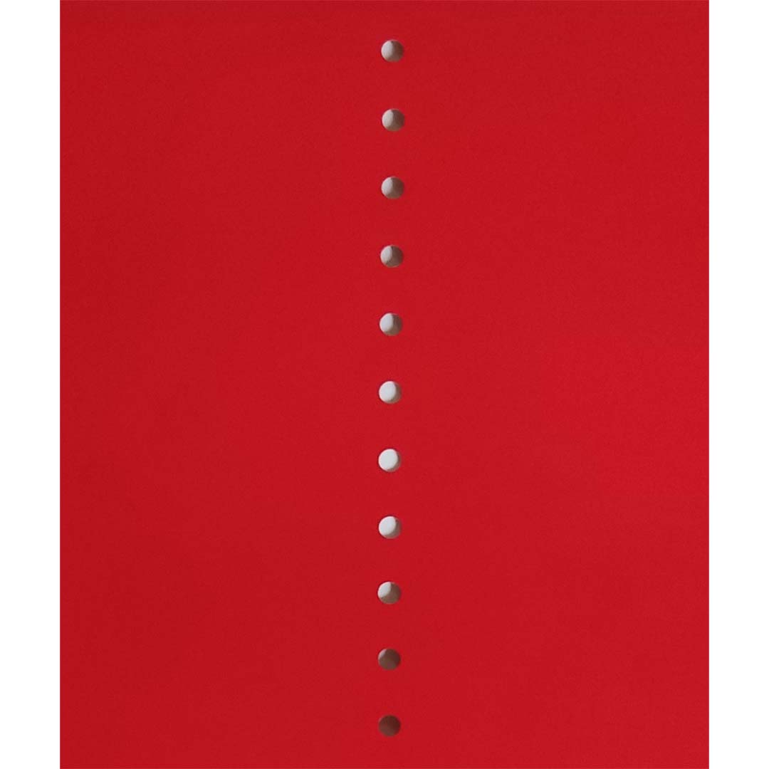 Set against a stark off-white border, the red field evokes both violence and transcendence. Fontana’s "buchi" (holes) were a bold rejection of traditional painting; they cut through the surface to introduce literal depth—spatial, philosophical, and spiritual. This graphic reproduction translates that gesture into a visual manifesto for the Spatialism movement he founded, collapsing the boundary between canvas and sculpture.