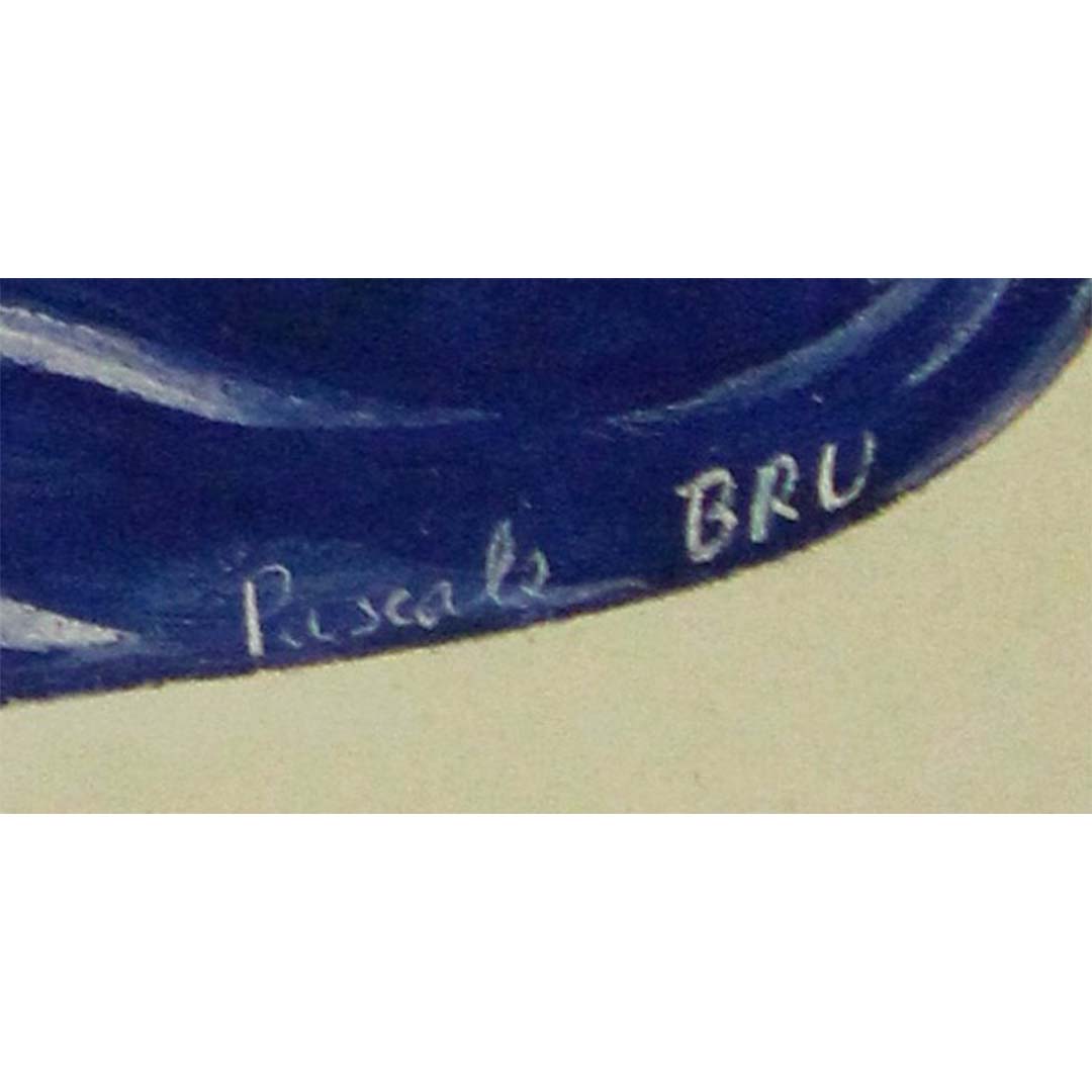 The poster, illustrated by Pascale Bru, captures the joyous spirit of La Nioulargue, the iconic sailing regatta that began as a friendly challenge in the Gulf of Saint-Tropez and blossomed into one of the most beloved nautical events on the Mediterranean. Bru’s hand-painted style evokes a folkloric, almost naïve quality—combining vibrant colors, playful forms, and heraldic symbolism. Towering over the quaint rooftops of Saint-Tropez, an angelic figure gestures to the boats racing below, while stylized seahorses and a medieval crest crown the composition, blending myth and maritime elegance.