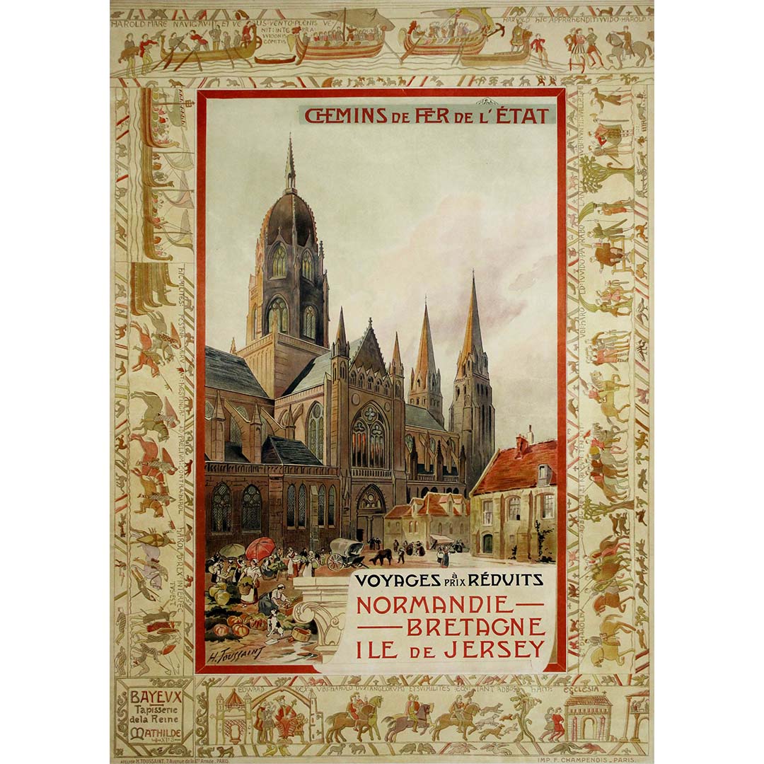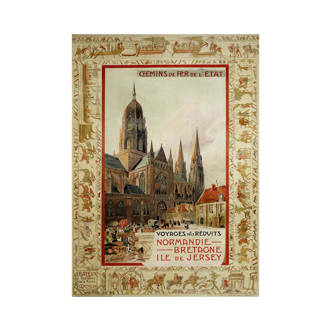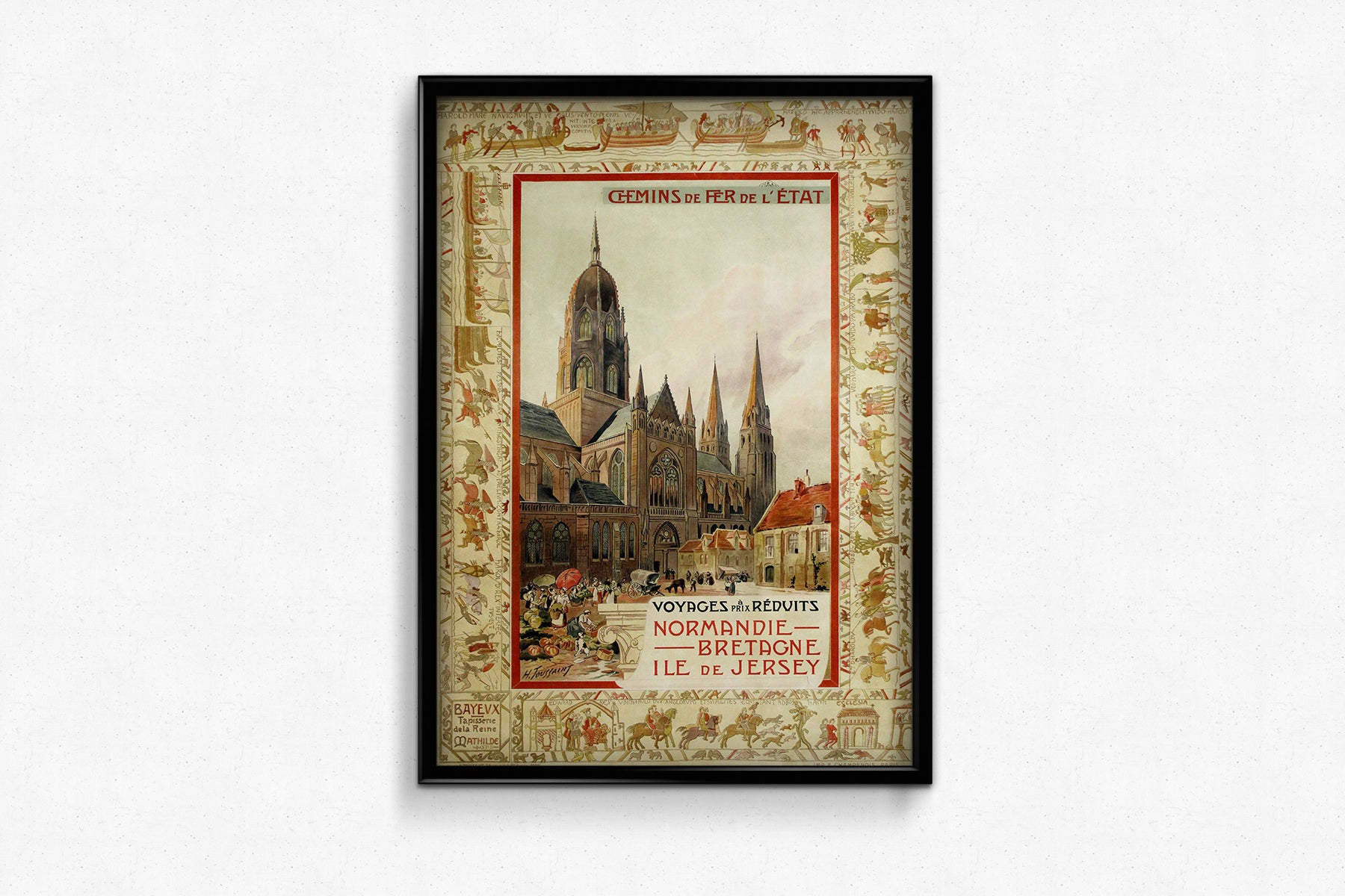 A prized piece for collectors of railway posters, Norman history, or French heritage art, this work bridges the worlds of graphic design, historical narrative, and architectural illustration.