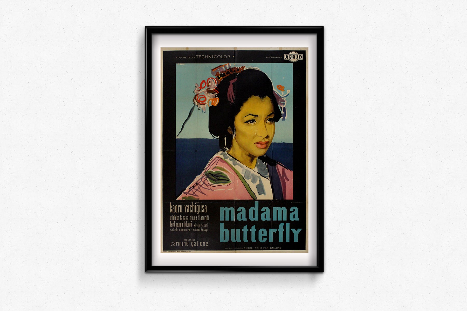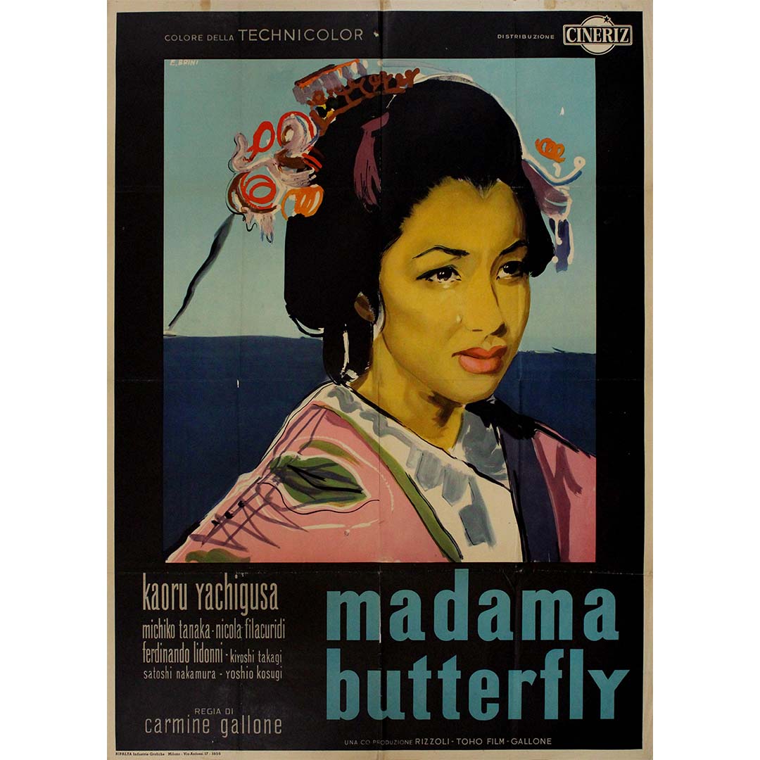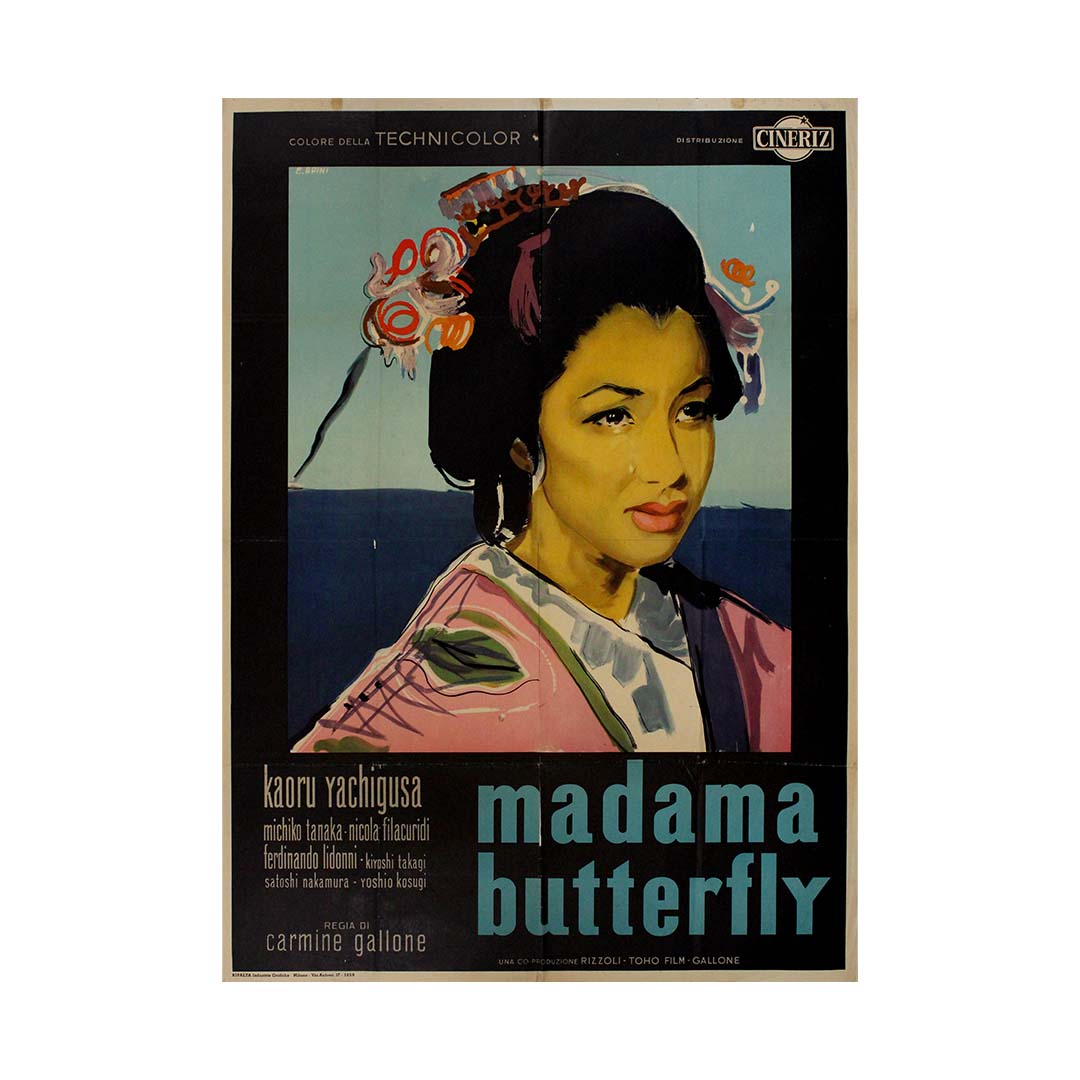 The figure portrayed is actress Kaoru Yachigusa, one of the stars of this international co-production directed by Carmine Gallone, produced in partnership between Rizzoli and Toho Films. The cast includes Michiko Tanaka, Nicola Filacuridi, and others from both Japanese and Italian cinema, underscoring the film’s ambition to bridge cultures, just as the opera does through its narrative.