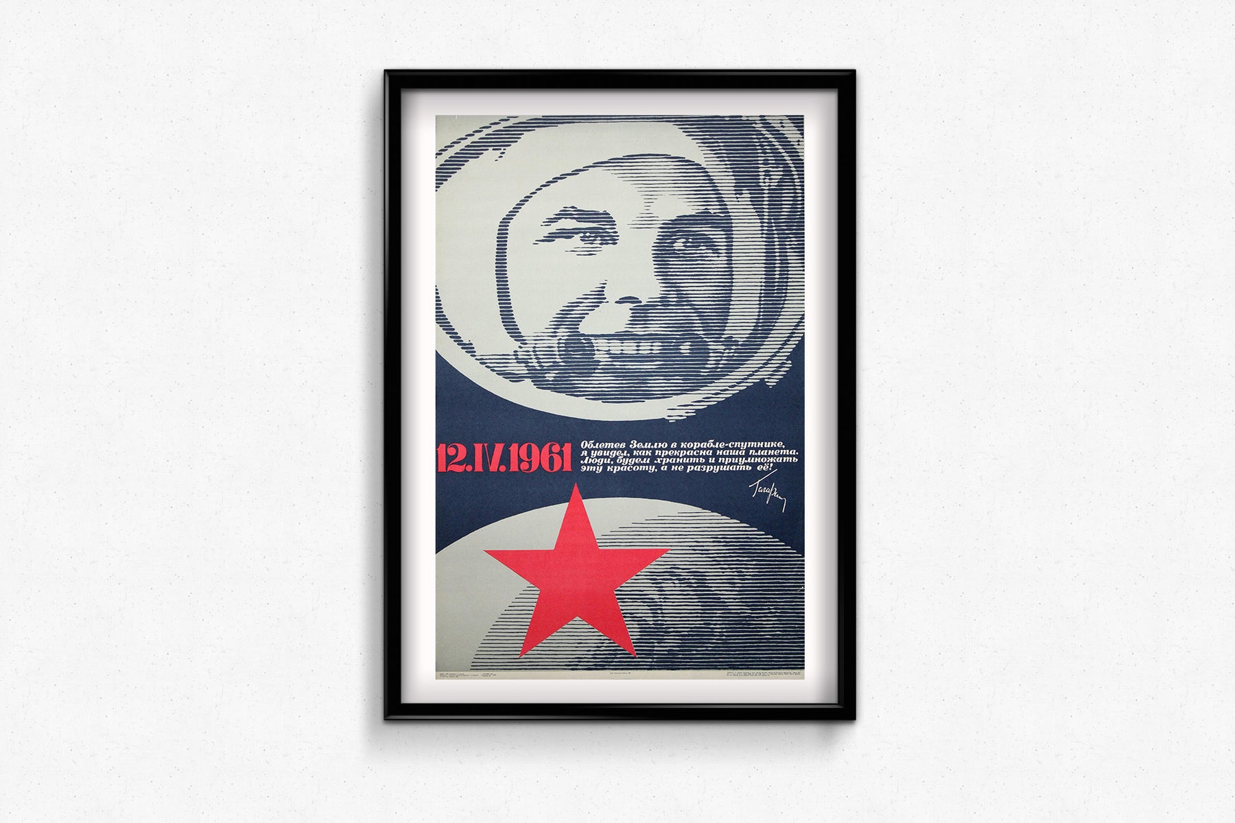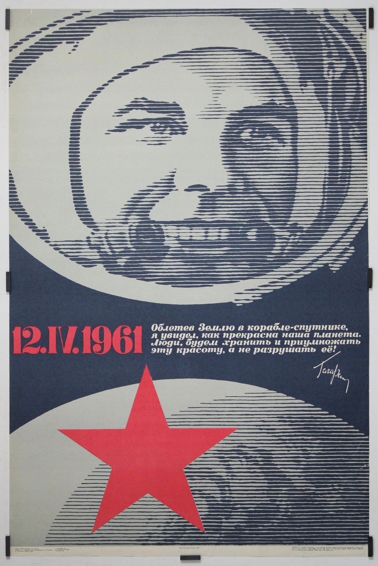 Exemple frappant du modernisme graphique soviétique tardif, cette œuvre combine imagerie spatiale, portrait et conscience écologique dans une composition intemporelle et contemplative.