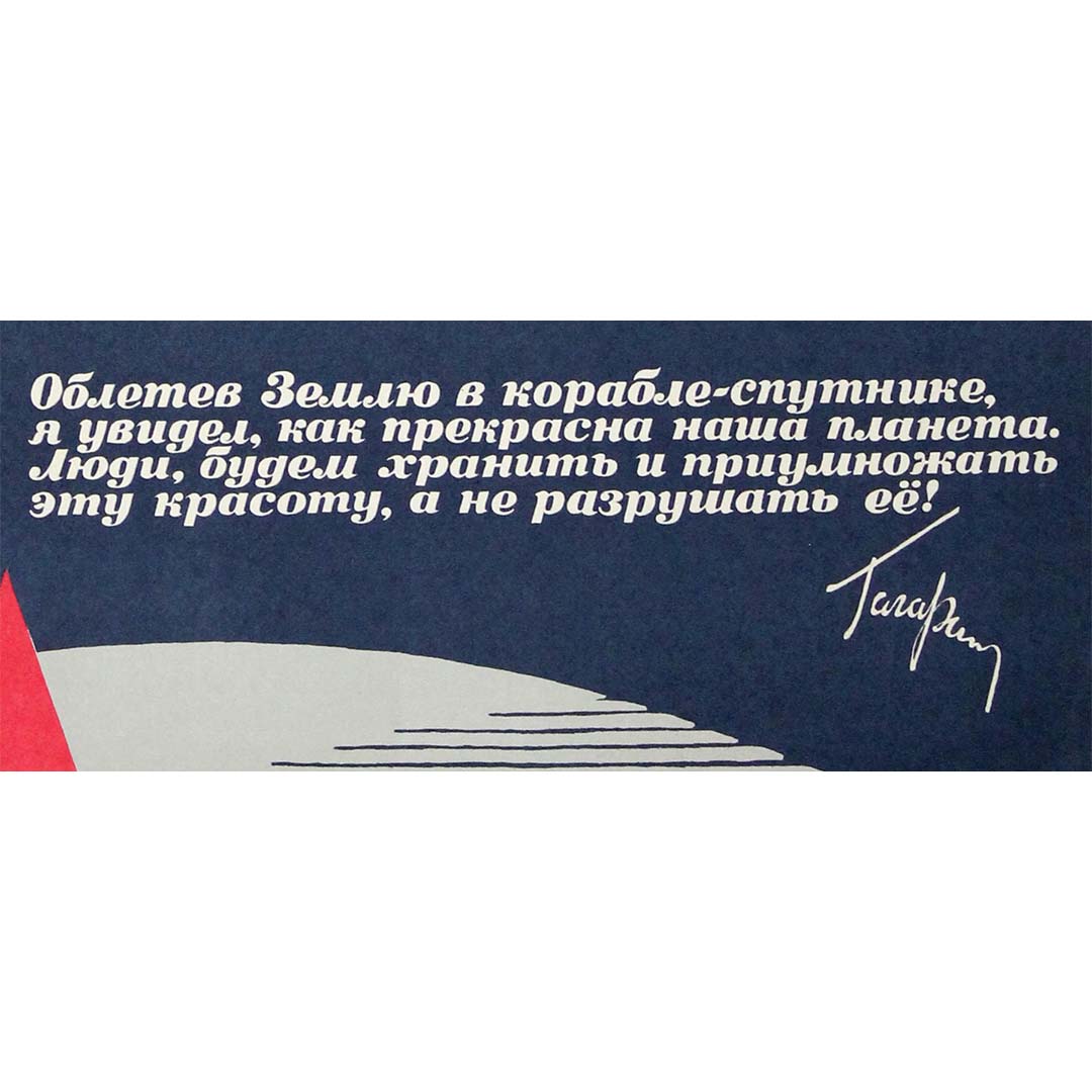 L'affiche reprend une citation attribuée à Gagarine, transformant ainsi l'œuvre en un message de sensibilisation universelle plutôt qu'en un outil de propagande.